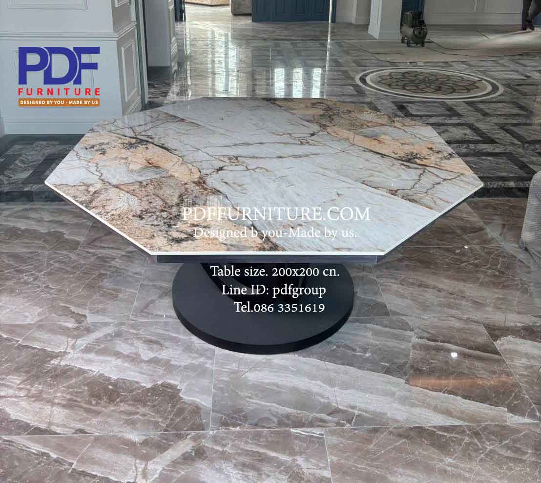 ผลงานบ้านลูกค้า ต.คลองข่อย ปากเกร็ด นนทบุรี #โต๊ะกินข้าว8เหลี่ยม 8ที่นั่ง ขนาด ทรง8เหลี่ยม 200x200x76 ซม. ขาทำจากไม้เนื้อแข็งทำสีโอ้คเข้ม หน้าทอปหินอิตาลี่ ลูกค้าท่านอื่น สนใจเรารับบริการสั่งทำได้ตามขนาด ตามแบบ เลือกวัสดุได้ตามต้องการ บริการรับส่งทั่วไทย สนใจติดต่อ สนง.ขาย/โชว์รูม บ.พีดีเอฟ กรุ๊ป จำกัด เขตคลองสามวา กรุงเทพฯ 10510 โทร.02 376 8745 ,086 3351619 ,094 887 6448 ,Line ID.pdfgroup ,email.deanpdf@pdffurniture.com เวปไซด์ www.pdffurniture.com